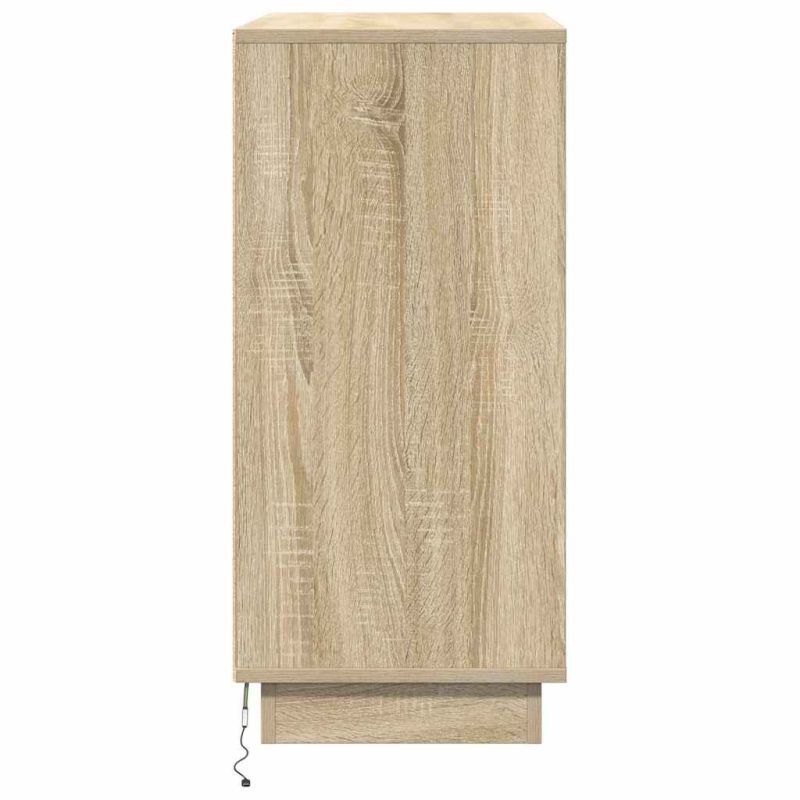 Този LED страничен шкаф е страхотен за всяко трапезарно или всекидневно пространство. С елегантния си правоъгълен дизайн и вградените RGB LED ленти, той предлага уникална атмосфера. Перфектен е за съчетаване на елегантност и практичност, осигурявайки нужното място за съхранение, докато придава стил на дома. Материали: Шкафът е изработен от инженерно дърво, което гарантира надеждност и стил. Здравината му осигурява дълготрайна употреба, а завършекът е идеален за модерни интериори. С инженерно дърво, изглежда супер елегантно. Включени компоненти: Шкафът разполага с рафтове и врати на панти, което предлага много място за чинии и декорации. LED лентите, захранвани чрез USB, добавят атмосфера и стил. Характеристики / Функции / Дизайн: RGB LED лентите ти позволяват да сменяш осветлението, за да отговаря на всяко настроение. Контролният бутон е лесен за употреба. Правоъгълната форма на шкафа го прави идеален за всеки модерен дом. Препоръчителни приложения: Перфектен за трапезария и всекидневна, той е идеален за съхранение на прибори и всякакви вещи. Стилният му дизайн внася елегантност в пространството. Грижа и поддръжка: Лесен за почистване с суха кърпа, за да избегнеш натрупването на прах. Не използвай агресивни химикали, за да запазиш LED светлинките и дървото в отлично състояние. Моля, обърнете внимание, че трябва да използвате само сертифициран вход DC 5V. По-високото напрежение може да доведе до прегряване и да повреди устройството, както и до потенциален риск от прегряване и пожар. Не свързвайте този продукт към захранване, различно от описаното в ръководството, на табелката с името или изрично препоръчано от vidaXL. Този уред не трябва да се използва от деца под 15 години, както и от лица с намалени физически, сетивни или умствени способности или с липса на опит и познания относно използването на електронни уреди. Електричеството е опасно. Повредите и неправилният монтаж, употреба или промяна (подмяна на отделни компоненти) могат да доведат до повреда на уреда , което да доведе до токов удар и опасност за потребителя. Не използвайте този продукт във взривоопасна атмосфера, като например при наличие на запалими течности, газове и прах, или при температура над 50 градуса по Целзий или повече. Не включвайте продукта, ако свързващият кабел или захранването са видимо повредени. Ако външният гъвкав кабел или захранващ кабел на това осветително тяло е повреден, той трябва да бъде заменен изключително от производителя или негов сервизен агент, или от подобно квалифицирано лице, за да се избегне опасност. Изключете захранването по време на монтажа и поддръжката. Уверете се, че крушките са изстинали. Светлинният източник на това осветително тяло не може да се заменя; когато светлинният източник достигне края на експлоатационния си срок, цялото осветително тяло трябва да се замени. Само за употреба на закрито, не използвайте този продукт на открито.