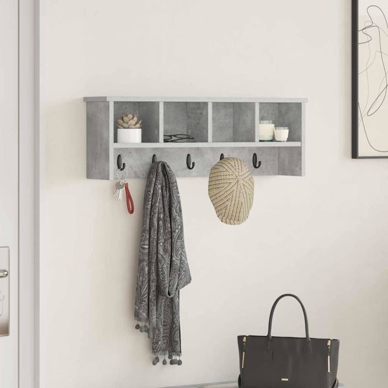 Стенен закачалка за палта с рафт Бетонно сиво 75 x 16 x 26 см