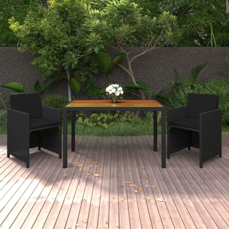 Този градински трапезен комплект с елегантен и съвременен дизайн ще бъде чудесен избор за хранене или почивка в градината. Подходящ за употреба на открито: Изработен от устойчив на атмосферни влияния и водоустойчив PE ратан, този външен трапезен комплект е лесен за почистване, издръжлив и подходящ за ежедневна употреба.Първокласен материал: Прахово боядисаната стоманена рамка прави масата и столовете здрави и издръжливи. Плотът е изработен от масивно акациево дърво с естествено маслено покритие – тропическа твърда дървесина, която е устойчива на атмосферни влияния и много издръжлива. Дебелите, меки, пълни с пяна възглавници за облегалката и седалката също добавят допълнителен комфорт при седене. Подвижните и перящи се калъфки за възглавници са снабдени с ципове.Гъвкав дизайн: Можете да дръпнете облегалките надолу и да съхранявате столове под масата, спестявайки ценно място за съхранение, когато комплектът не се използва. Благодарение на олекотената конструкция всички елементи са лесни за преместване. Забележка:Забележка: За да удължите живота на вашите градински мебели, ви препоръчваме да ги защитите с водоустойчиво покритие. Максимално 110 кг на седалка. Съобразете се с риска от открит огън и други източници на силна топлина в близост до продукта.