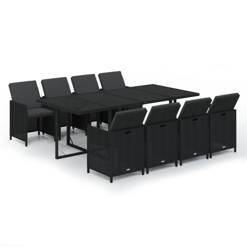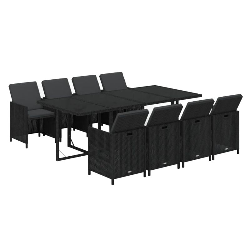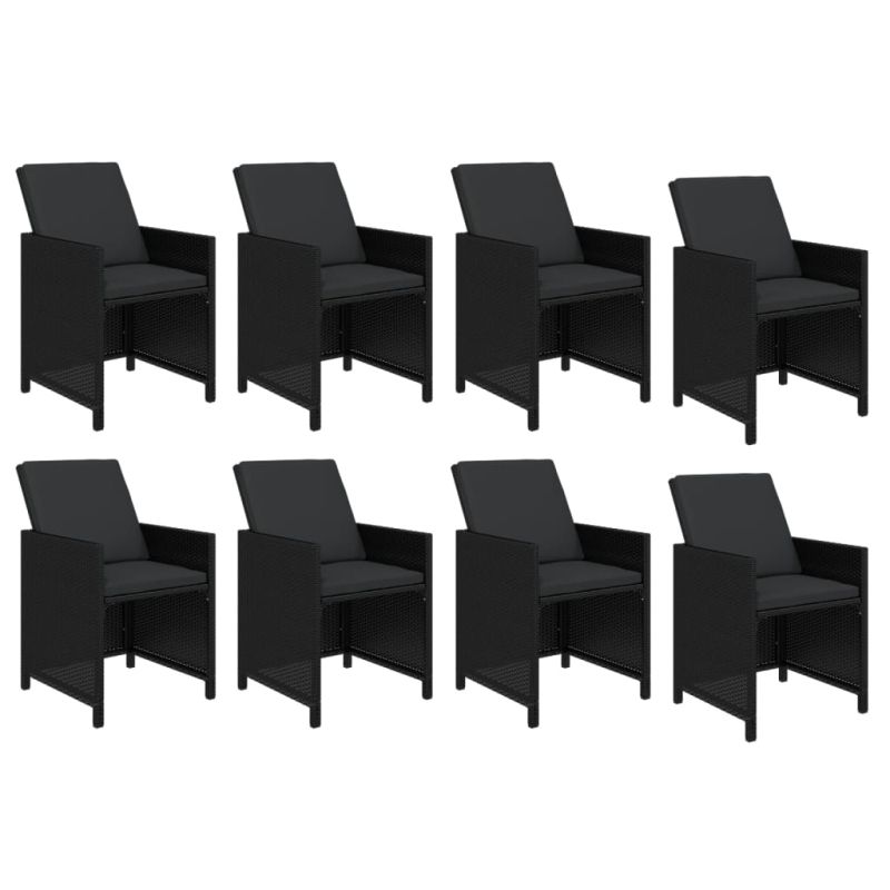 Градински трапезен комплект възглавници 9 части полиратан черен