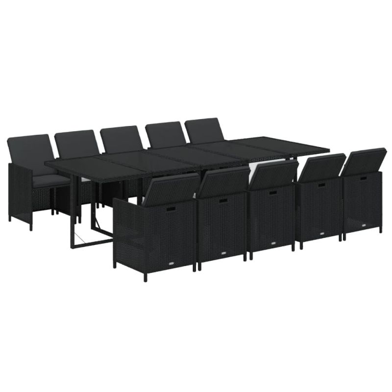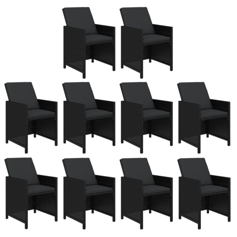 Градински комплект с възглавници 11 части полиратан черен