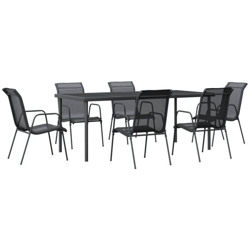 Градински трапезен комплект 7 части черен стомана и текстилен