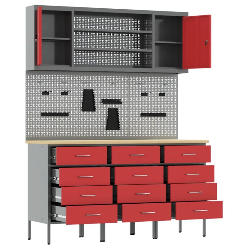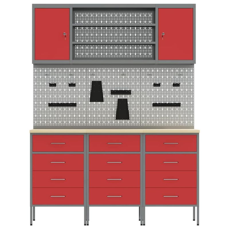 Работен кабинет 7 pcs Червено Инженерна дървесина и стомана