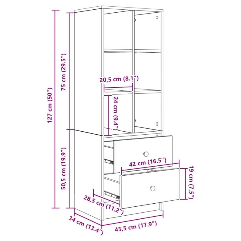 Висок шкаф с чекмедже Циментено сиво 45,5 x 34 x 127 см