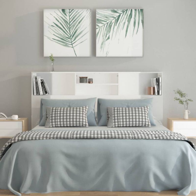 Табла за легло тип шкаф, бял гланц, 160x19x103,5 см