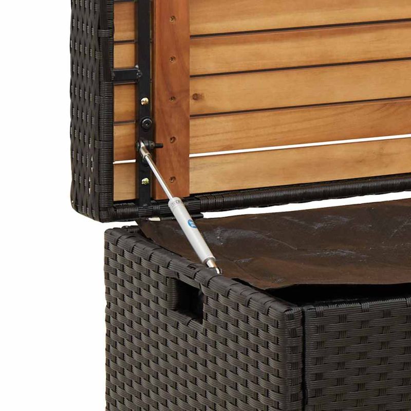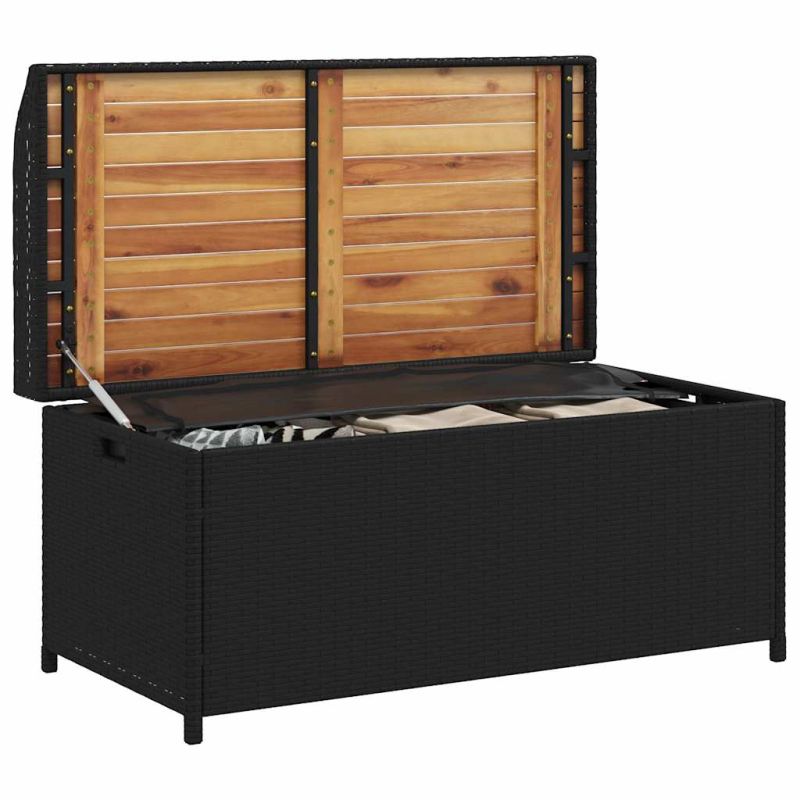 Пейка за съхранение черна 100x50x52 см полиратан и акация