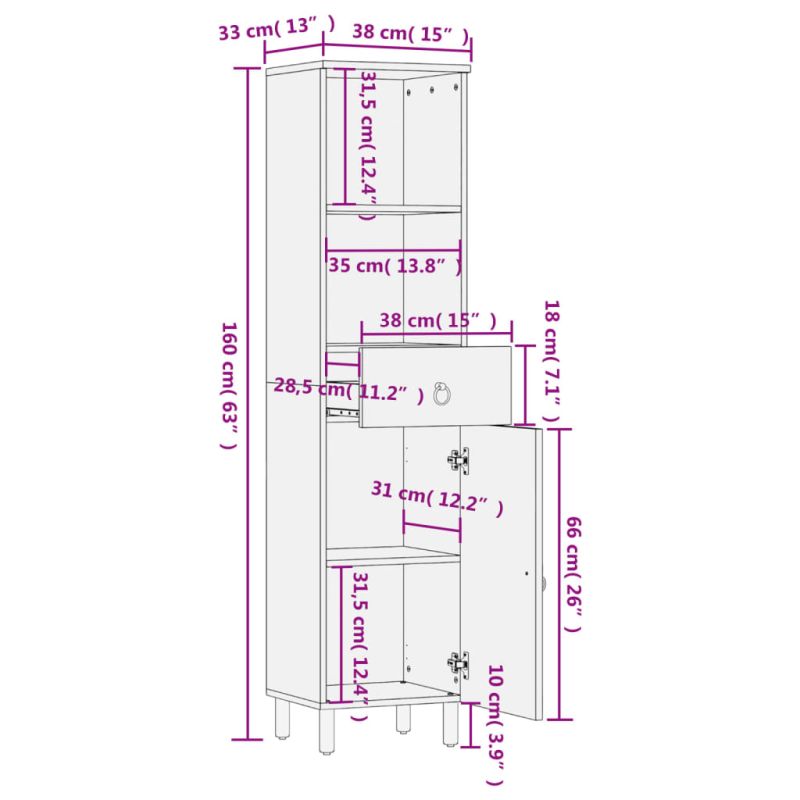 Шкаф за баня 38x33x160 см масивно мангово дърво