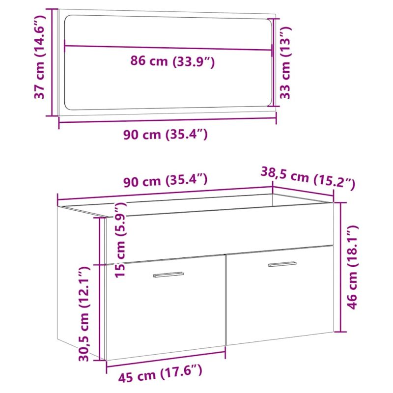 Комплект мебели за баня от 2 части, дъб сонома, инженерно дърво