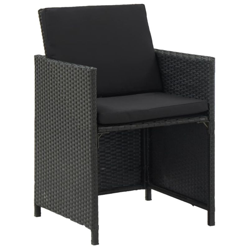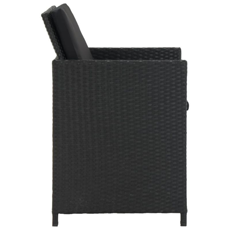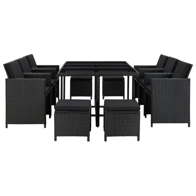 Градински комплект с възглавници, 11 части, полиратан, черен