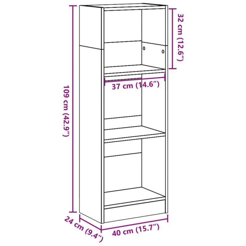 Библиотека, старо дърво, 40x24x109 см, инженерно дърво