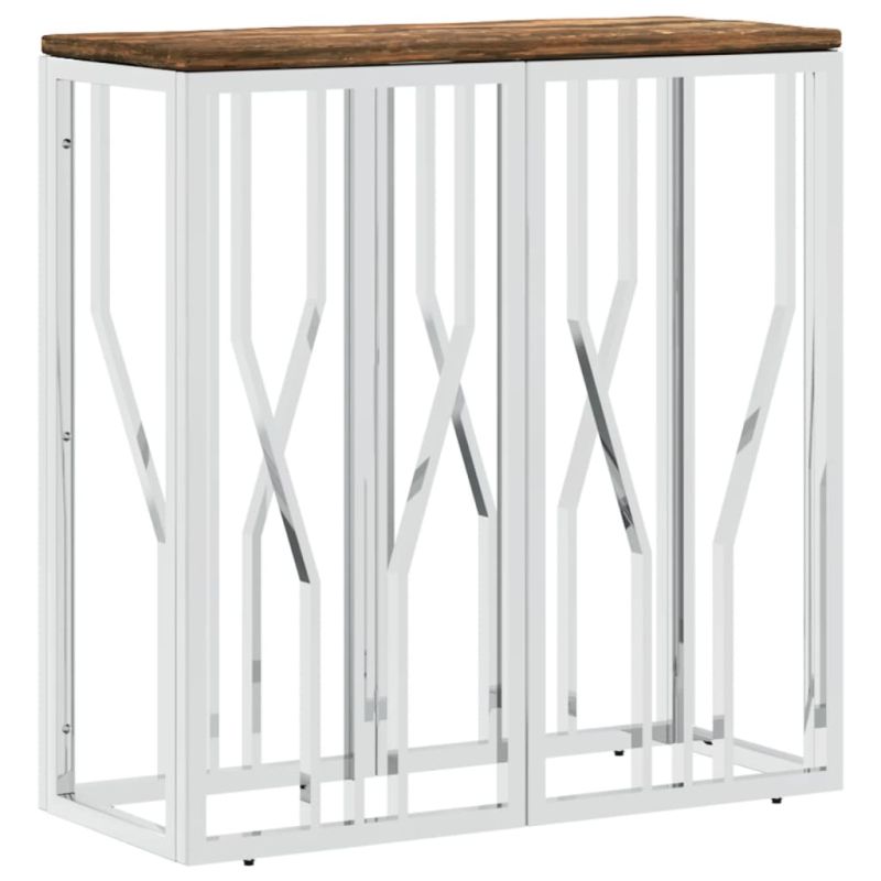Конзолна маса сребриста неръждаема стомана и регенерирано дърво