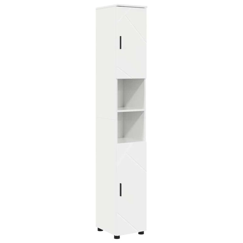 Шкаф за баня със съхранение Лъскаво бяло 30 x 35 x 192 см