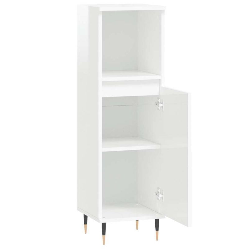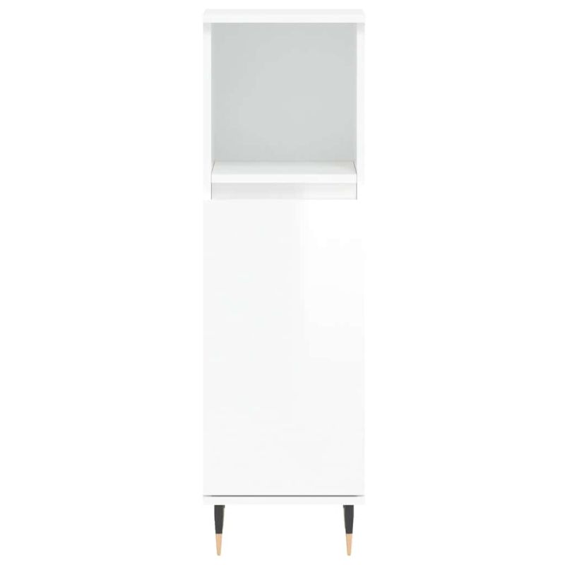 Шкаф за баня, бял гланц, 30x30x100 см, инженерно дърво