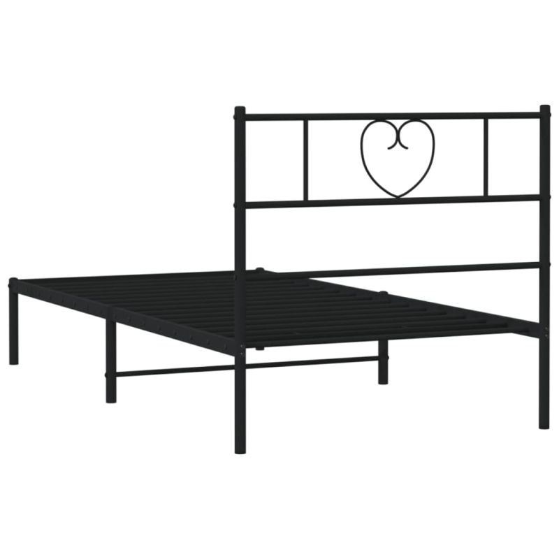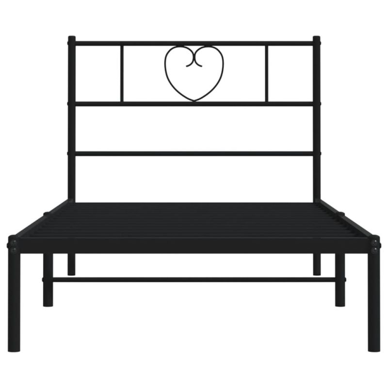 Метална рамка за легло с горна табла, черна, 90x200 см