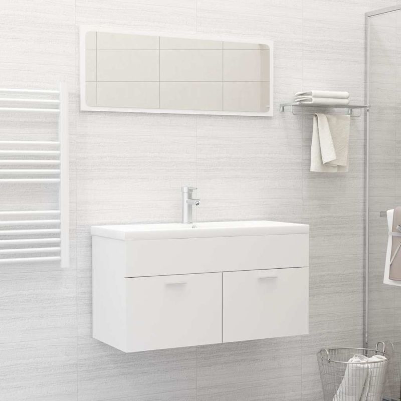 С този стилен комплект мебели за баня можете да създадете допълнително пространство за съхранение в банята си с впечатляващ, подреден вид. Изчистените линии и елегантният дизайн се вписват перфектно във вашата баня. Комплектът мебели, включващ огледало и шкаф, е изработен от здрава и стабилна инженерна дървесина. Този шикозен шкаф разполага с 1 отделение и 2 врати, които предлагат достатъчно място за съхранение на вещи в банята. Горната част на шкафа е идеална за поставяне на мивката. Огледалото също така придава отличен вид на домашния ви интериор. Освен това този комплект за баня се почиства лесно с влажна кърпа. Моля, обърнете внимание: Мивката не е включена в доставката.