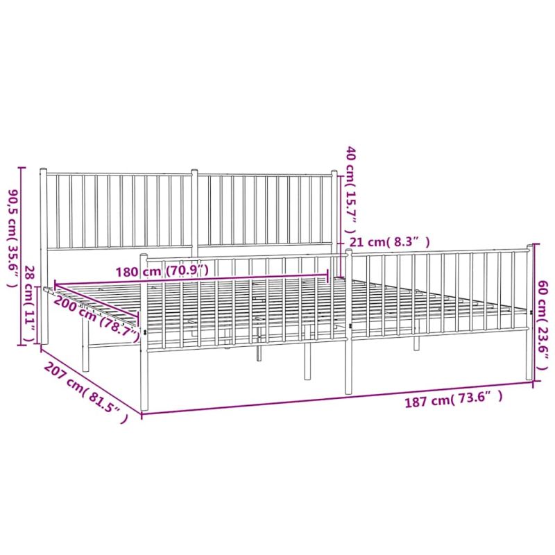 Метална рамка за легло, без матрак, с табли, черна, 180x200 см
