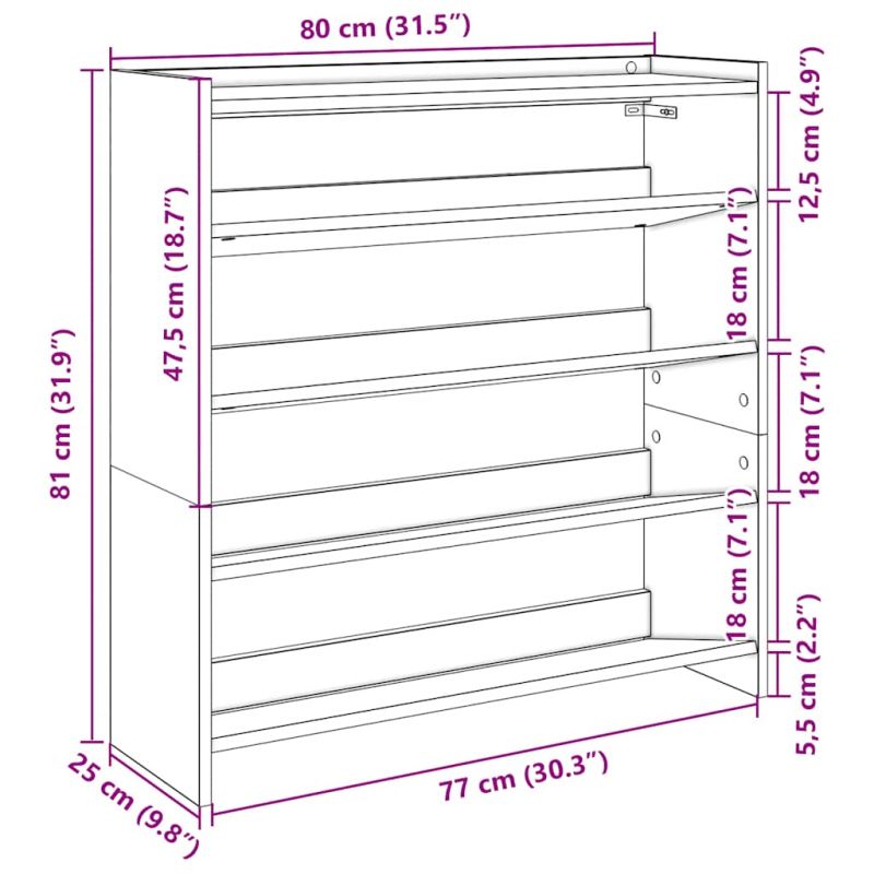 Етажерка за обувки, дъб артизан, 80x25x81 см, инженерно дърво