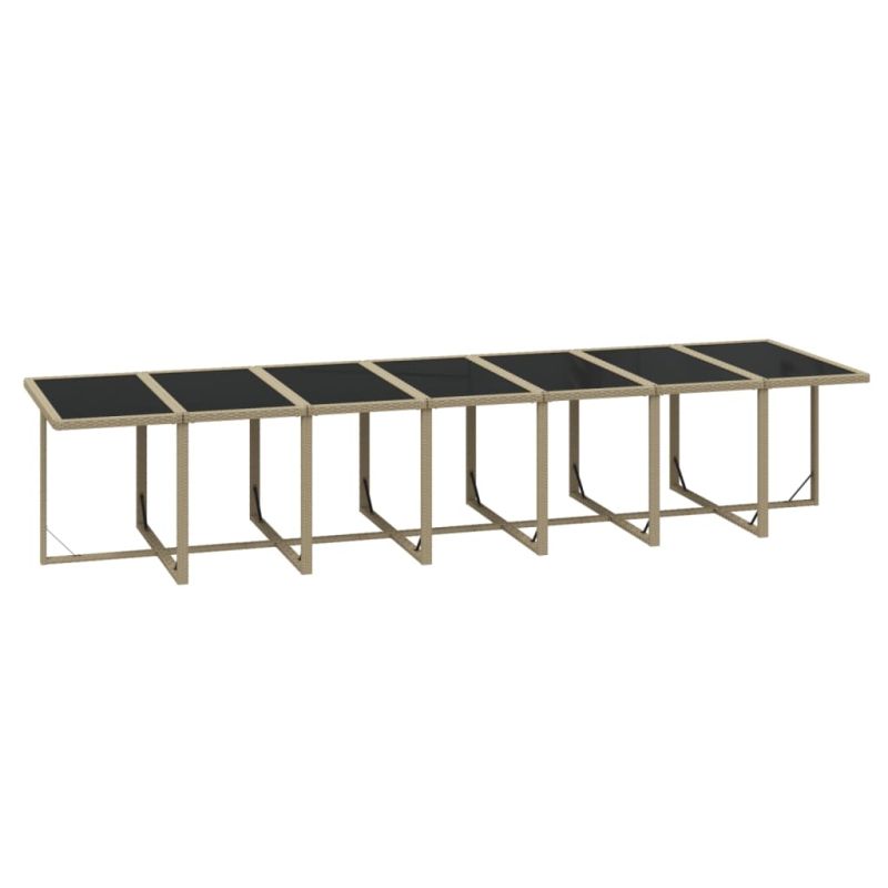 Този полиратанов градински трапезен комплект с елегантен и уникален дизайн е чудесен избор за вечеря и почивка във вашето външно жилищно пространство. Практичен материал: Обвит с устойчив на атмосферни влияния PE ратан, този външен трапезен комплект е лесен за почистване и издръжлив, осигурявайки години на качествена почивка.Стабилна и здрава конструкция: Стоманените рамки на градинската маса и столовете осигуряват здравина и стабилност.Гъвкави столове: Можете да дръпнете облегалките надолу и да съхранявате външните столове под масата, спестявайки ценно място за съхранение, когато комплектът не се използва. Благодарение на олекотената конструкция всички елементи са лесни за преместване.Комфортно изживяване: Пухкавите, меки и запълнени с пяна възглавници за сядане и облягане също допринасят за допълнителния комфорт при седене. Забележка:Забележка: За да удължите живота на вашите градински мебели, ви препоръчваме да ги защитите с водоустойчиво покритие.