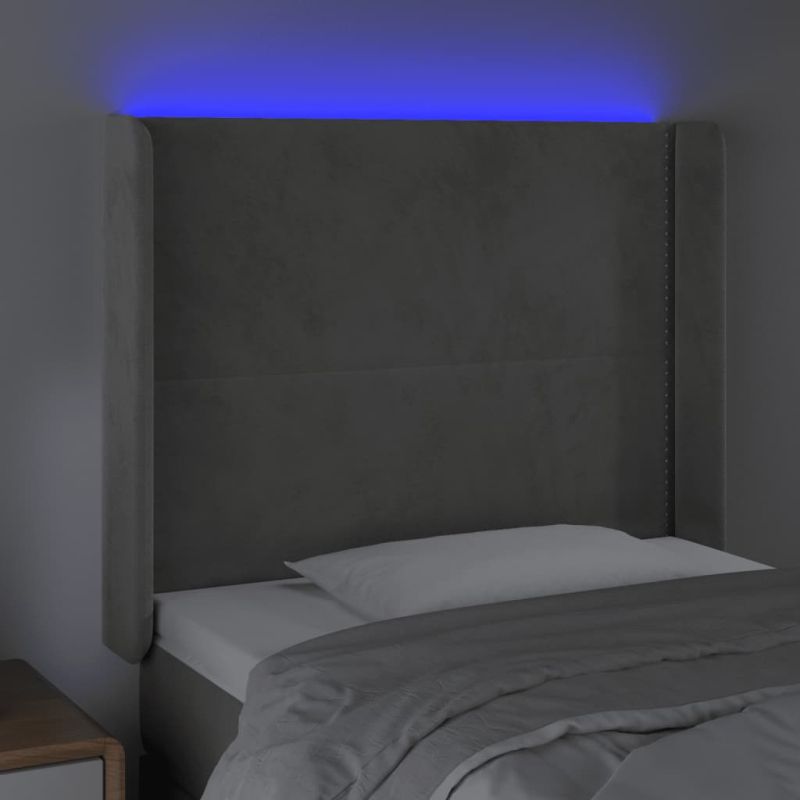 LED горна табла за легло, светлосива, 83x16x118/128 см, кадифе