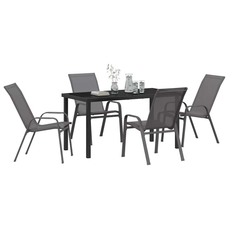 Този модерният комплект за хранене е универсално решение за откриващи пространства, което ще подобри градината или терасата ви. С изчистени линии и минималистичен стил, е идеален за лятно обедно хранене или вечеря под звездите. Конструиран със стил и за дълготрайност, предлагайки удобство и естетика, той ще промени начина, по който се наслаждавате на хранене на открито. Материали: Комплектът за хранене е от прахово боядисана стомана, която е супер здрава и издръжлива. Текстилът е бързо сушащ и удобен, идеален за всякакви метеорологични условия. Материалите са избрани, за да издържат, запазвайки елегантния си вид. Включени компоненти: Има завършен гръб, който изглежда добре от всички ъгли. Рамката, краката и подлакътниците са изградени от прахово боядисана стомана, придаваща елегантност. Текстилът на гърба и седалките е устойчив на влага и предоставя допълнителен комфорт. Характеристики / Функция / Дизайн: UV-устойчивите компоненти удължават живота на мебелите, предпазвайки ги от увреждане от слънцето. Праховото боядисване осигурява здравина и модерен вид. Ергономичните подлакътници са проектирани за комфорт. Препоръчителни употреби: Идеален за пролетта и лятото, комплектът е перфектен за създаване на стилна атмосфера за хранене в градината или на терасата. Подходящ е за събирания, семейни вечери или спокойни мигове. Грижи и поддръжка: Използвайте покривало, когато комплектът не се използва. Това ще го защити от издънка, запазвайки качеството и външния му вид. Сглобяването изисква двама и отвертка, за да се осигури стабилност.