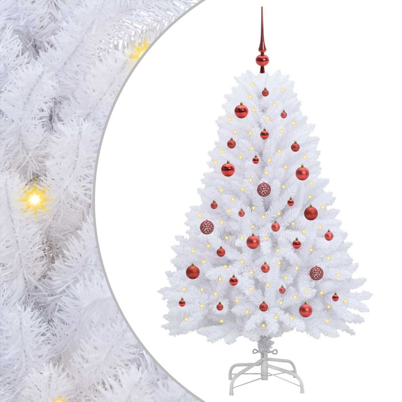 Начало Дом и градина Декор Сезонни и празнични декорации Коледни елхи Изкуствено коледно дърво с хингед Бяло 150 cm PVC и Стомана