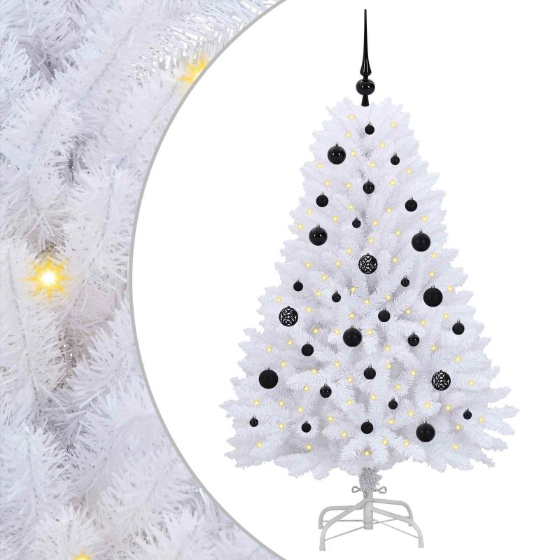 Начало Дом и градина Декор Сезонни и празнични декорации Коледни елхи Изкуствено коледно дърво с хингед Бяло 150 cm PVC и Стомана