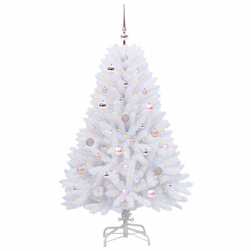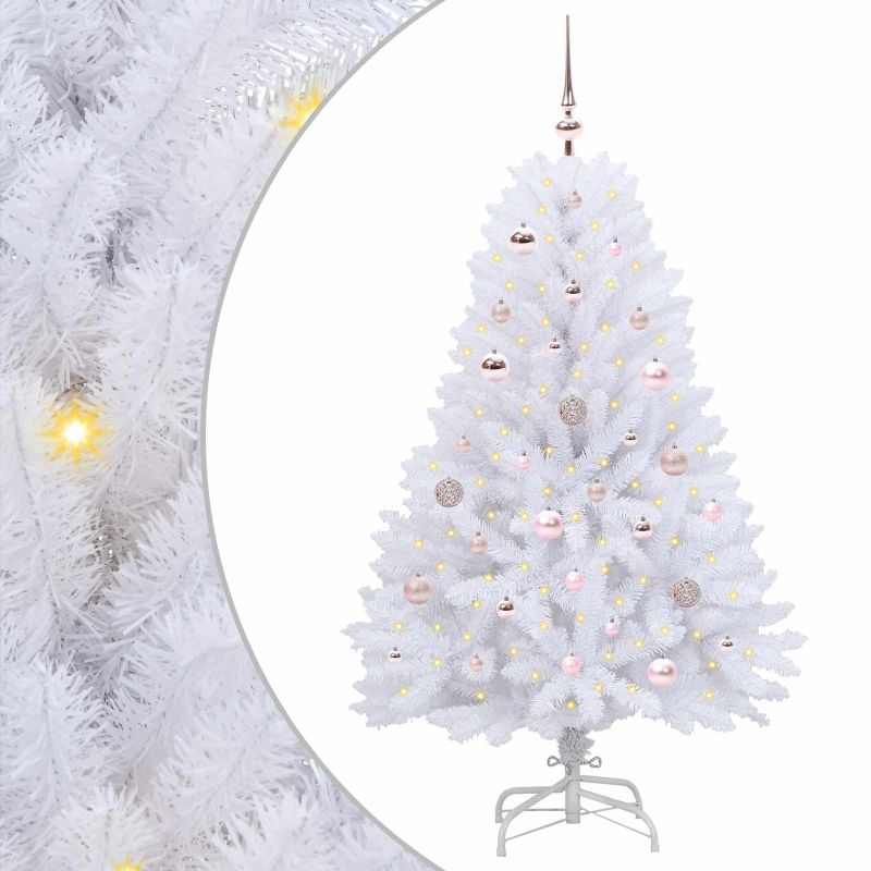 Изкуствено коледно дърво с хингед Бяло 150 cm PVC и Стомана