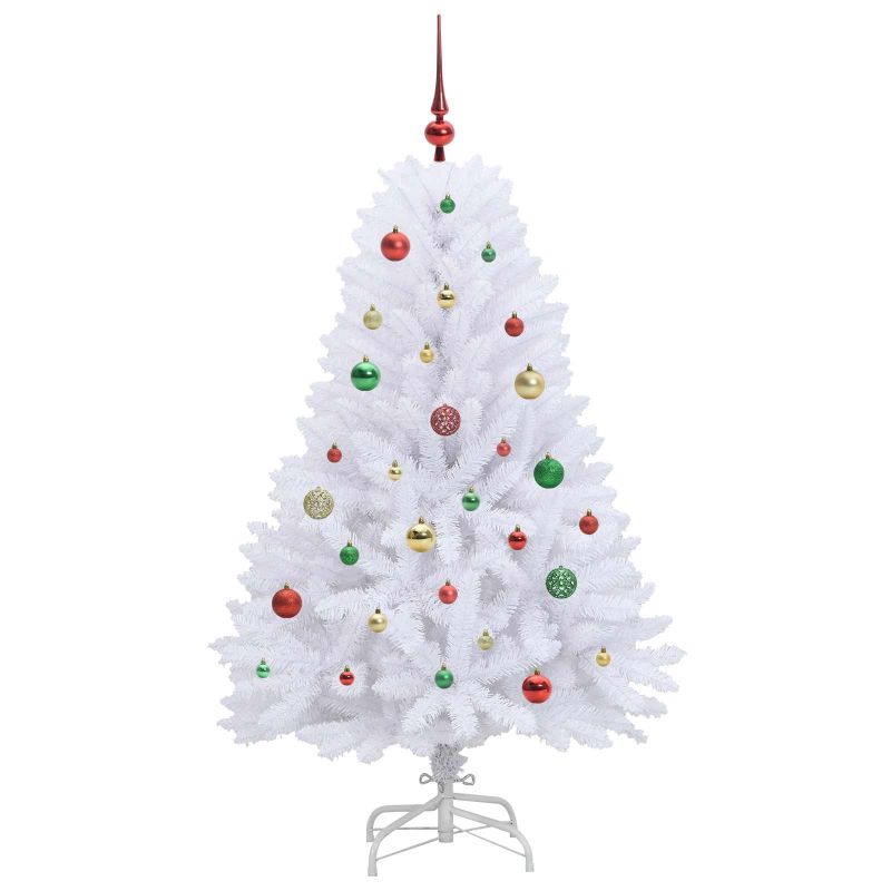 Изкуствено коледно дърво с хингед Бяло 150 cm PVC и Стомана