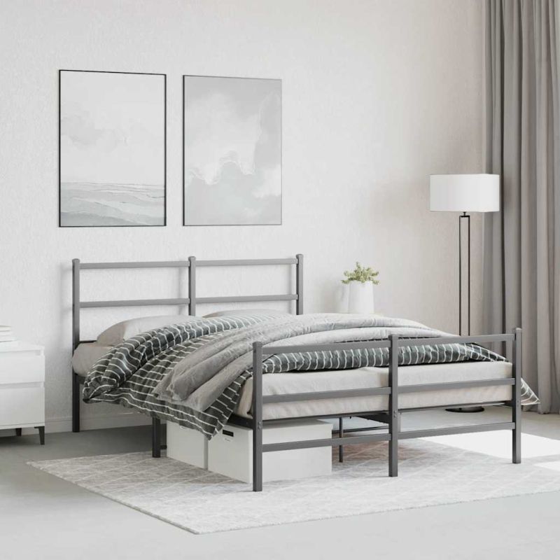 Метална рамка за легло с горна и долна табла, черна, 140x200 см