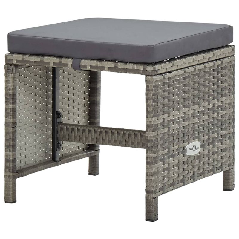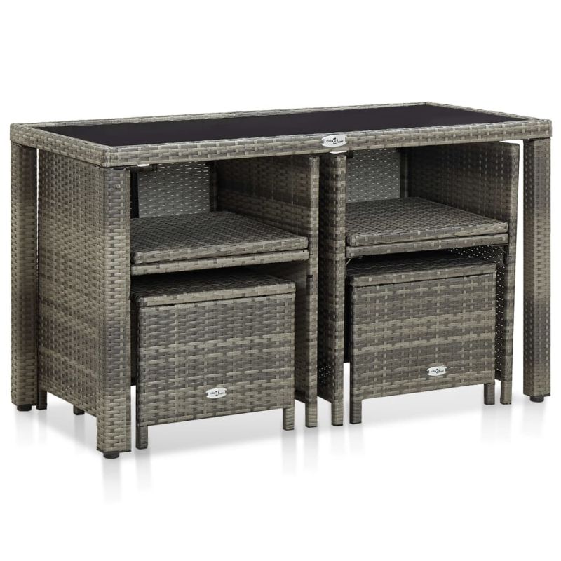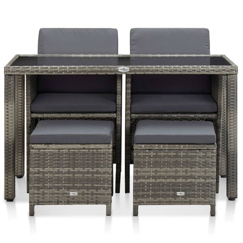 Градински комплект с възглавници, 5 части, полиратан, сив