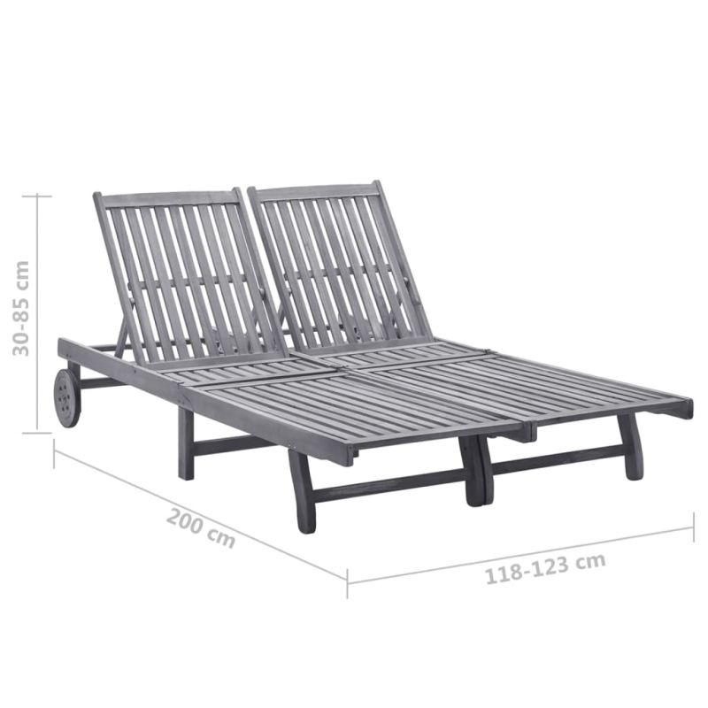 2-местен градински шезлонг с шалте, сив, акациево дърво масив