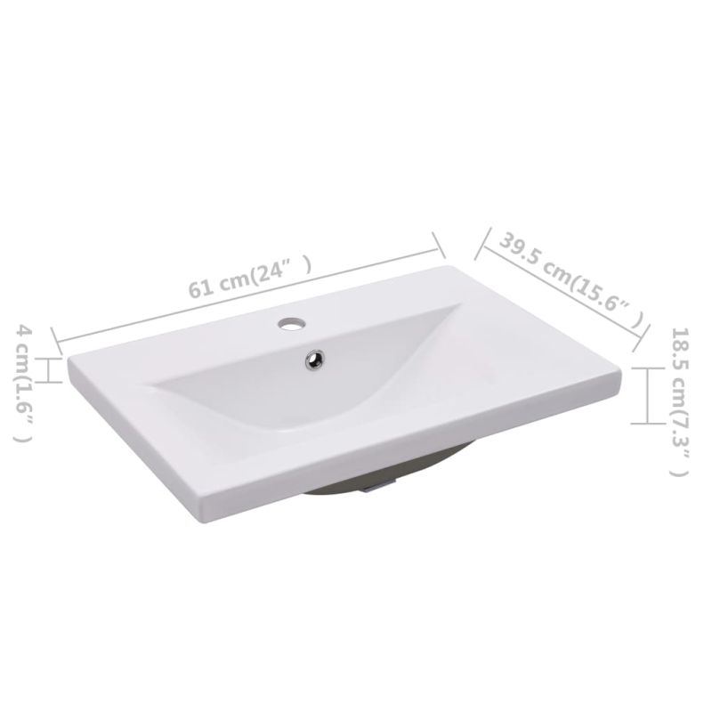 Този шкаф за баня с вградена мивка е идеален за вашата баня или тоалетна с впечатляваща, спретната визия. Шкафът за съхранение разполага с 1 чекмедже, което предлага достатъчно място за съхранение на вещи във вашата баня. Пасва идеално под мивката и прави съхранението в банята доста удобно. Изработена от керамика, мивката може да служи не само за ежедневна употреба, но и като украса във вашето жилищно пространство. Благодарение на модерния и съвременен дизайн, този умивалник определено ще подхожда на всеки декор. Също така е оборудвана с преливник за изтичане на вода, когато се напълни твърде много. Нейната лъскава повърхност носи модерен, но елегантен дизайн. Освен това шкафът и мивката се почистват лесно с влажна кърпа. Моля, обърнете внимание: Кранът и отводнителната тръба не са включени в доставката. Децата трябва да бъдат наблюдавани, за да се гарантира, че няма да си играят с уреда. Пазете децата далеч от зоната за сглобяване.Внимание: Прочетете внимателно инструкциите преди употреба и ги запазете за по-нататъшни справки.