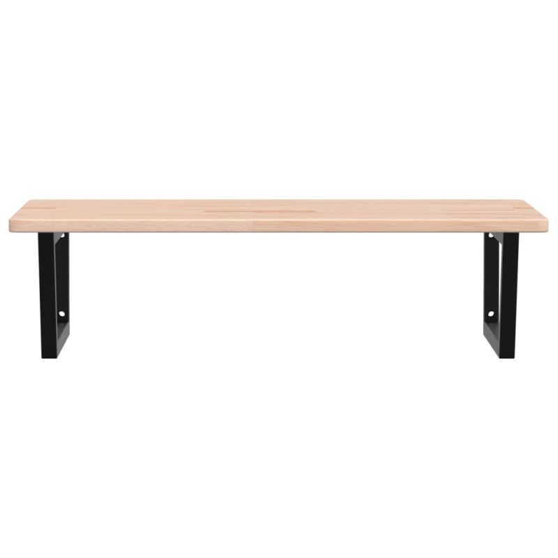 Стенният рафт за мивка се прикрепя сигурно към стената, осигурявайки елегантно и спестяващо място решение за вашата баня. Здрав и дълготраен: Този рафт за мивка е комбиниран със стоманена конструкция и плот от масивна дъбова дървесина, което го прави здрав, стабилен и дълготраен. Спестяване на място: Плаващият рафт за мивка има достатъчно място за съхранение на кремове и дребни предмети. Благодарение на трапецовидната форма можете да закачите кърпи или други неща на опората, за да спестите място. Лесен за използване: Плотът се доставя без дупки, за да позволи на мивката да се монтира отляво, отдясно или в центъра, в зависимост от изискванията на вашето помещение. Благодарение на предварително пробитите отвори в държача, той може лесно да се сглоби с плота и да се монтира на стената. Широки приложения: Благодарение на модерния си дизайн, осигурява допълнително пространство за различни видове бани. Добре е да се знае:Винтовете не са включени, можете да закупите винтовете отделно въз основа на информацията, предоставена по-долу. Прикрепване към стена: 2 бр дюбели M8 на скоба Дървен плот: 2 бр M5x18 винта (T=2) или 2 бр M5x20 винта (T=2,5/4 см) на скоба