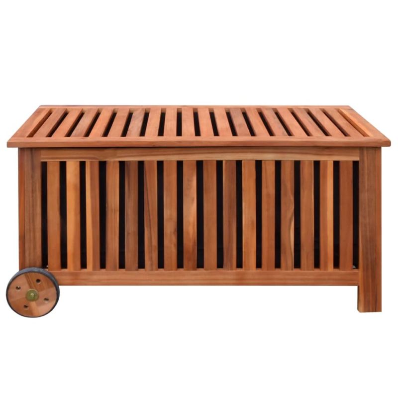 Тази дървена ракла ще бъде идеално решение за съхранение на възглавници, одеяла или други предмети във вашата градина, на верандата или терасата. Благодарение на високото качество на лакираното дърво, тази градинска ракла е лесна за почистване, устойчива на износване и подходяща за ежедневна употреба. Лакирана е с водоустойчив лак и има вътрешна устойчива на вода чанта, с която можете да защитите вашите предмети от влага. Тя е проектирана с 2 колела и дръжка от едната страна за лесен транспорт и пренасяне. Тази удобна ракла има много приложения за съхранение и ще бъде чудесно допълнение към всяко вътрешно или външно пространство!