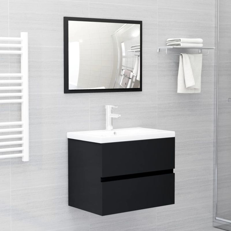 Долен шкаф за мивка, черен, 60x38,5x45 см, инженерно дърво