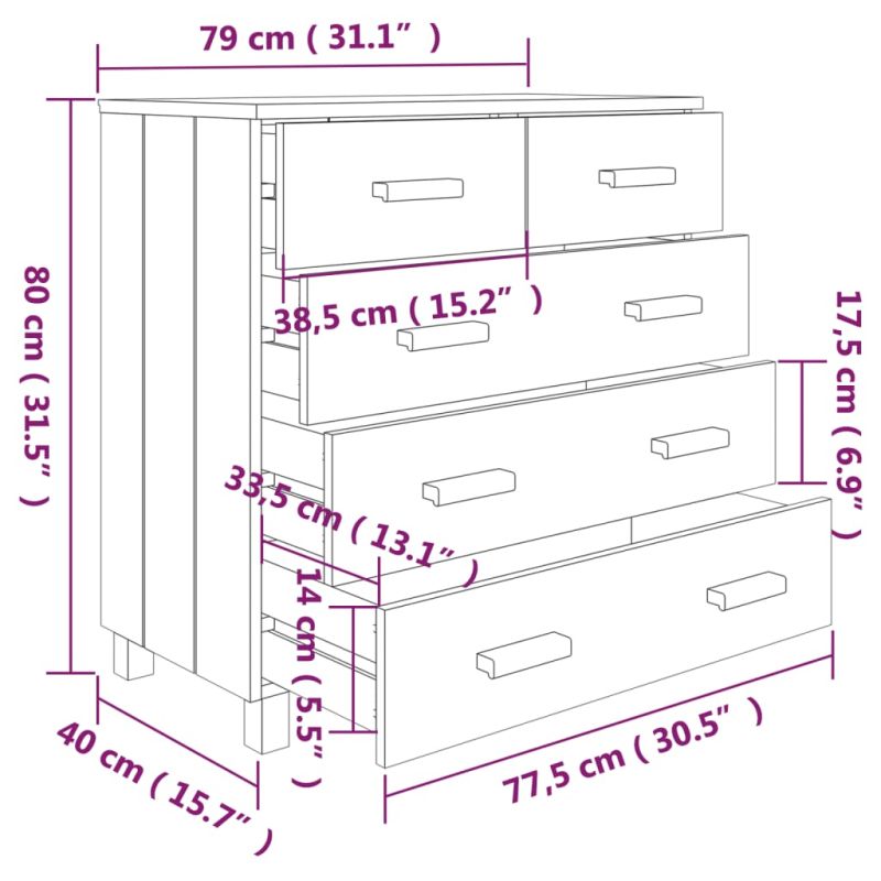 Сайдборд HAMAR, меденокафяв, 79x40x80 см, бор масив