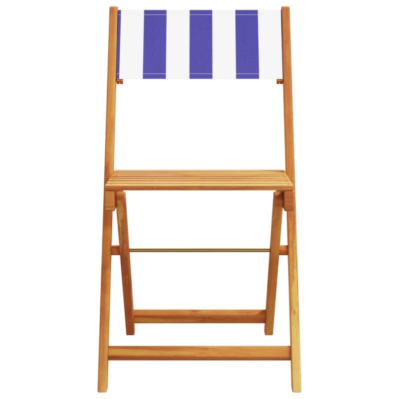 Градински трапезен комплект, 5 части, син и бял, плат и масив