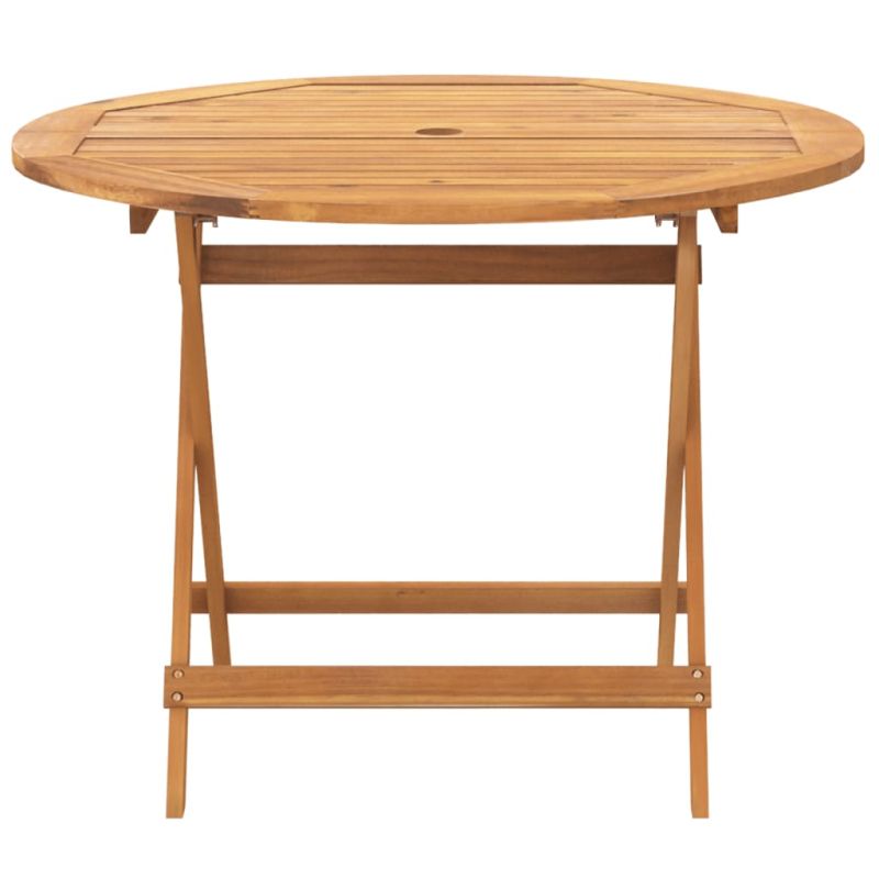 Този градински трапезен комплект е чудесен избор за вечеря на открито или просто за почивка в градината, задния двор или във вътрешния двор. Здраво и стабилно: Масивното акациево дърво е известно със своята здравина и издръжливост. Неговите разнообразни цветове и уникални зърнести шарки му придават привлекателен вид. С добра стабилност и устойчивост на атмосферни влияния, тя е идеална за изработка на вътрешни и външни мебели.Практичен дизайн: Практичният и плосък дървен подлакътник ви позволява да отпуснете ръцете си върху него, докато се наслаждавате на времето си на открито.Здрав плот: Външната маса предлага отлична опора за вашите напитки, закуски, кошници с плодове и любимите ви декорации.Сгъваем дизайн: Трапезните маси и столове могат лесно да се сгънат, когато не се използват, за лесно съхранение и транспортиране. Добре е да се знае:За да сте сигурни, че вашите външни мебели ще останат красиви, ви препоръчваме да ги защитите с водоустойчиво покривало. Максимално 110 кг на седалка.