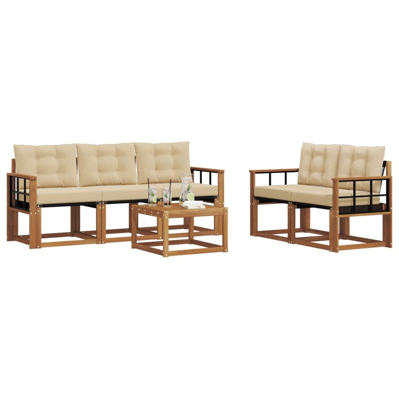 Комплект дивани за открито 6 pcs Натурален и Бежов
