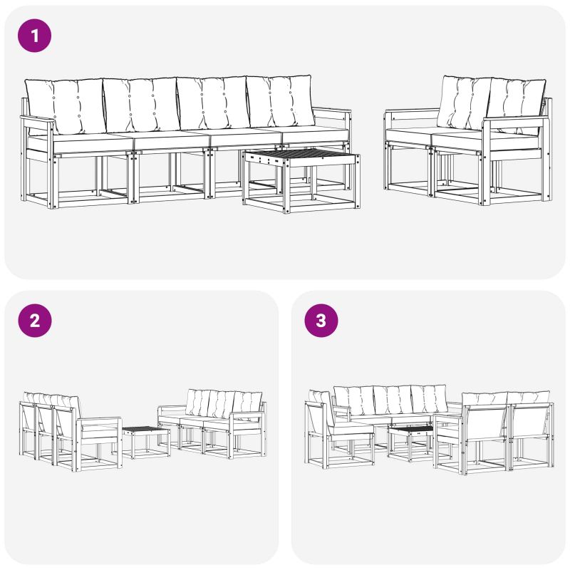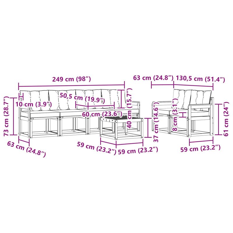 • 6 x Среден диван: 59 x 63 x 73 см (ДхШхВ)