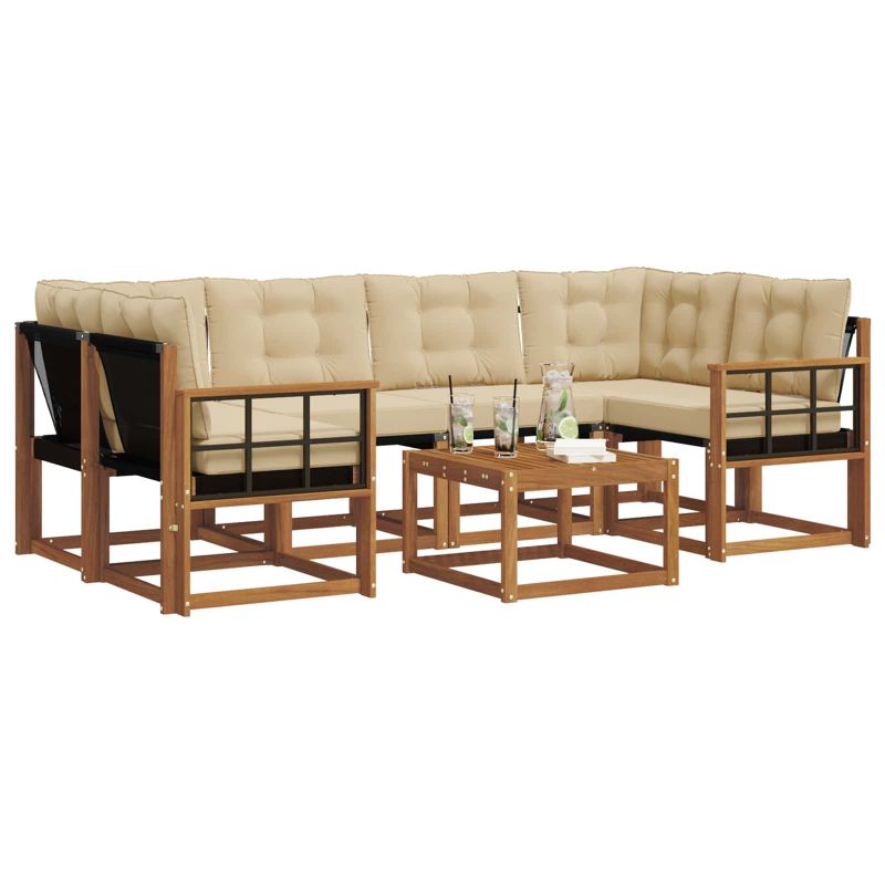 Комплект дивани за открито 7 pcs Натурален и Бежов