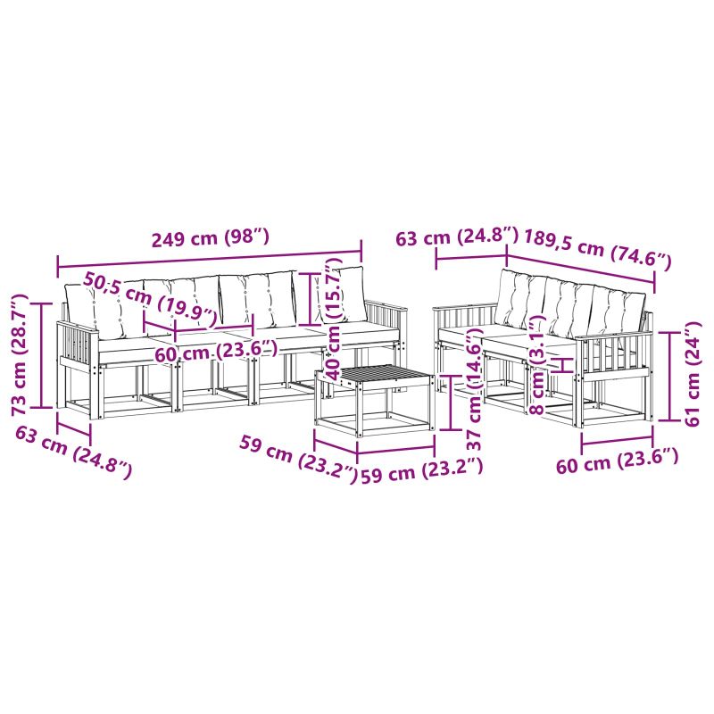 • 7 x Среден диван: 59 x 63 x 73 см (ДxШxВ)