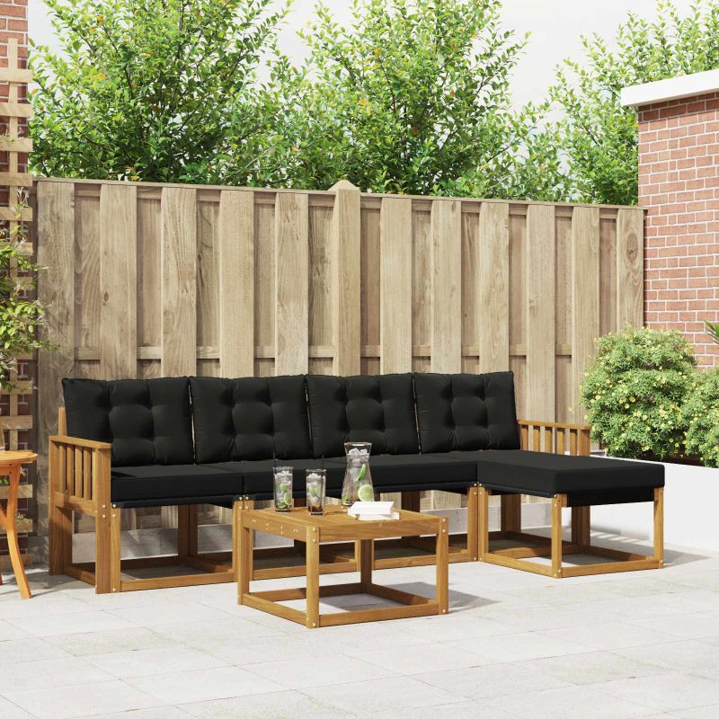 Този комплект градински мебели съчетава стил и функционалност, създавайки уникален фокус за всяка градина или тераса. С модерен дизайн, вдъхновен от изчистени линии и спартански детайли, той добавя елегантност, докато подкрепя комфортния открит отдих и социални срещи. Направен е изцяло от масивно акациево дърво, осигурявайки дълготрайност и красив златист вид, какъвто търсят практичните и стилни собственици. Дълготрайно акациево дърво: Изработено от масивно акациево дърво, това е комплект, който се отличава с издръжливост и е подходящ за условия на открито. Структурната му мощност осигурява стабилност и дълготрайност, докато топлия му естествен цвят повдига всяко пространство. Устойчив на времето: Този комплект мебели предлага лаковo покритие, което допълнително защитава от слънцето, дъжд и атмосферни влияния, запазвайки външния вид и функционалността му за дълго. Функционален и красив дизайн: Всеки детайл, от подлакътници до облегалки, е замислен да комбинира стил с практичност, предоставяйки комфорт и визуална хармония за събирания на открито. Комфорт и универсалност: Модулният дизайн на дивана позволява различни конфигурации, проявяващи се в всички ситуации, от патиото до градината. Спокойно място за размисъл или за събиране с приятели, той се адаптира лесно, максимално увеличавайки удобството. Лесна поддръжка: Просто почиствайте с влажна кърпа и избягвайте агресивни почистващи средства, за да поддържате визията му свежа, в същото време удължавайки живота на мебелите.