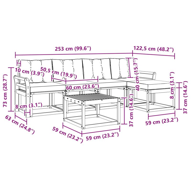 Този комплект градински мебели съчетава стил и функционалност, създавайки уникален фокус за всяка градина или тераса. С модерен дизайн, вдъхновен от изчистени линии и спартански детайли, той добавя елегантност, докато подкрепя комфортния открит отдих и социални срещи. Направен е изцяло от масивно акациево дърво, осигурявайки дълготрайност и красив златист вид, какъвто търсят практичните и стилни собственици. Дълготрайно акациево дърво: Изработено от масивно акациево дърво, това е комплект, който се отличава с издръжливост и е подходящ за условия на открито. Структурната му мощност осигурява стабилност и дълготрайност, докато топлия му естествен цвят повдига всяко пространство. Устойчив на времето: Този комплект мебели предлага лаковo покритие, което допълнително защитава от слънцето, дъжд и атмосферни влияния, запазвайки външния вид и функционалността му за дълго. Функционален и красив дизайн: Всеки детайл, от подлакътници до облегалки, е замислен да комбинира стил с практичност, предоставяйки комфорт и визуална хармония за събирания на открито. Комфорт и универсалност: Модулният дизайн на дивана позволява различни конфигурации, проявяващи се в всички ситуации, от патиото до градината. Спокойно място за размисъл или за събиране с приятели, той се адаптира лесно, максимално увеличавайки удобството. Лесна поддръжка: Просто почиствайте с влажна кърпа и избягвайте агресивни почистващи средства, за да поддържате визията му свежа, в същото време удължавайки живота на мебелите.
