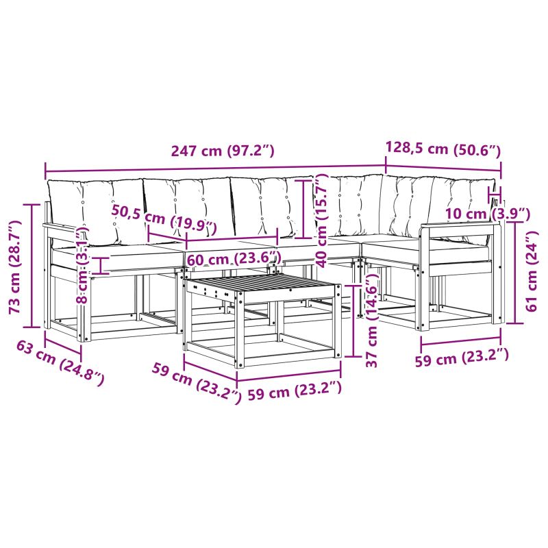 • 4 x Среден диван: 59 x 63 x 73 см (ДxШxВ)