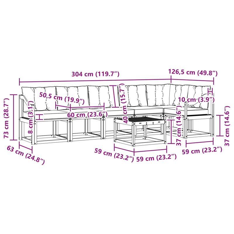 Комплект дивани за открито 7 pcs Естествено и черно