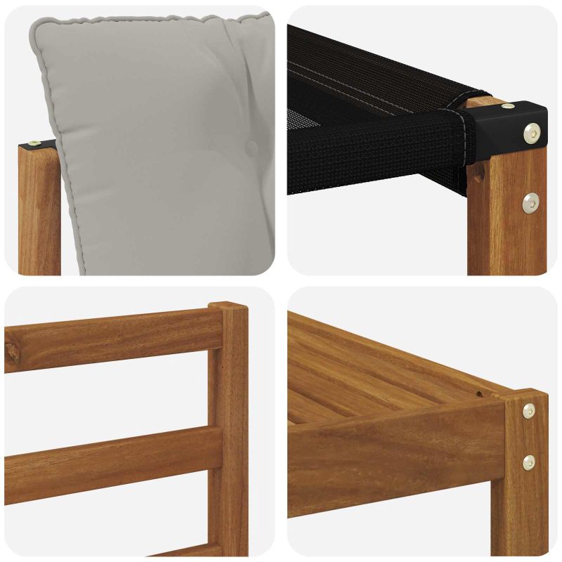 Този комплект за външни мебели съчетава стил и практичност, правейки всяка градина или тераса впечатляваща. С модерен дизайн и чисти линии, той добавя елегантност и е идеален за почивка на открито и социални събирания. Направен от масивна акациева дървесина, комплектът е дълготраен и визуално привлекателен, чудесен избор за тези, които търсят както стил, така и удобство в градинските мебели. Издръжлива масивна акациева дървесина: Направен от масивна акациева дървесина, този комплект е здрав и устойчив на външни условия. Солидната конструкция предлага надеждна опора и дълготрайност, а топлият естествен цвят допълва всяка градина или тераса. Водоустойчив дизайн: Този комплект мебели има защитно покритие, което осигурява допълнителна защита срещу слънце и дъжд. Лакираната повърхност помага за поддържане на добрия вид и функция, предлагаща дълготрайност за градината, терасата или двора. Компоненти и дизайн: Всеки елемент от подлакътниците до облегалките е проектиран за стил и функция. Поддържащите характеристики осигуряват комфорт, а координираният дизайн предлага визуално хармонично усещане, подходящо за всякакви случаи на открито. Комфорт и многофункционалност: Модулният дизайн позволява различни конфигурации, за да отговарят на нуждите. Идеален за релаксация, социални събирания или четене на книга, комплектът лесно се приспособява към всяка открита среда, максимизирайки комфорт и полезност. Лесна поддръжка: За да запазиш мебелите, просто избършете с влажна кърпа и избягвайте остри почистващи агенти. Редовната грижа помага да се запази външния вид и удължава живота на мебелите.