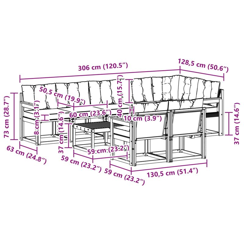 • 7 x възглавница за сядане: 60 x 50,5 x 8 см (ДхШхВ)