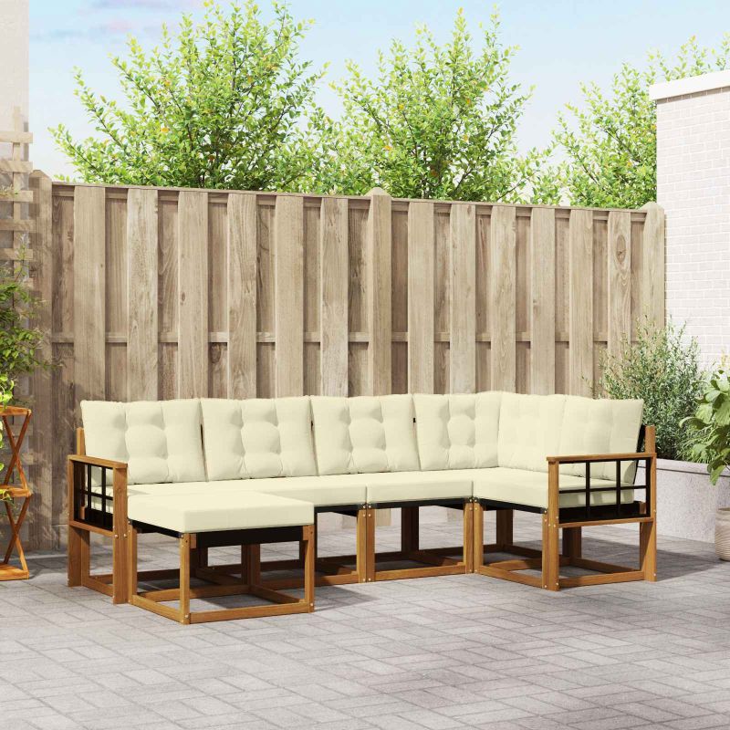 Комплект дивани за открито 6 pcs Натурален и Крема