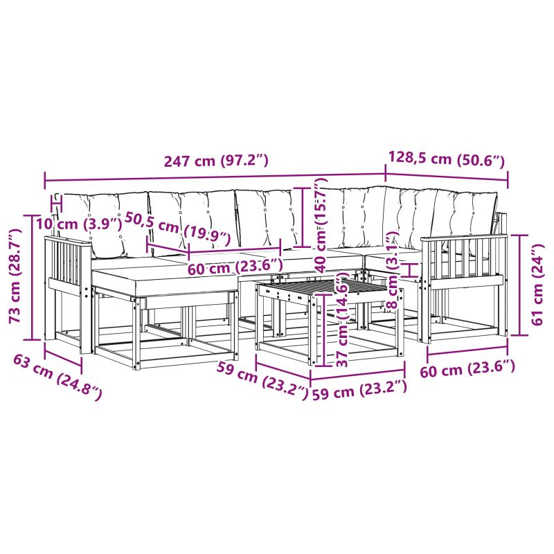 Този модерен комплект дивани променя начина, по който се отпускаме навън, с изчистени линии и прост дизайн. Изработен, за да бъде използван на открито, този комплект предлага комбинация от лесен стил и достатъчна функционалност. Текстурите и сладкият дизайн предлагат традиционен вид, а също така са практични в разнообразни открито пространства. Качествени материали : Комплектът е от здраво акациево дърво и текстил, избрани за дълготрайност и стилен вид. Дървото придава естествена текстура, която вдъхва уют, а текстилът е устойчив на времето, осигуряващ дълговечност на седалките. Функционални компоненти : Включва проектирани компоненти с ергономични подлакътници и поддържащи гърбове, за да добави комфорт. Текстилната седалка е лесна за поддръжка, устойчива на износване. Удобство : Насладете се на безпроблемна релаксация с дебелите възглавници, които предлагат комфорт за продължително сядане. Удобни ръкохватки и практична маса за дренаж също така увеличават функционалността за открито. Пригодност за различни пространства : Идеален за градини, патиа, дворове или крайбрежни зони. Независимо дали ли организирате събитие или просто искате да се насладите на есенното слънце, той е идеален за всякакви открити ситуации. Лесна поддръжка : Поддържането на този модерен комплект е лесно - просто избърсвайте с влажна кърпа. Минимизирайте износването с периодични обработки, за да поддържате дървото в отлично състояние през всички сезони.
